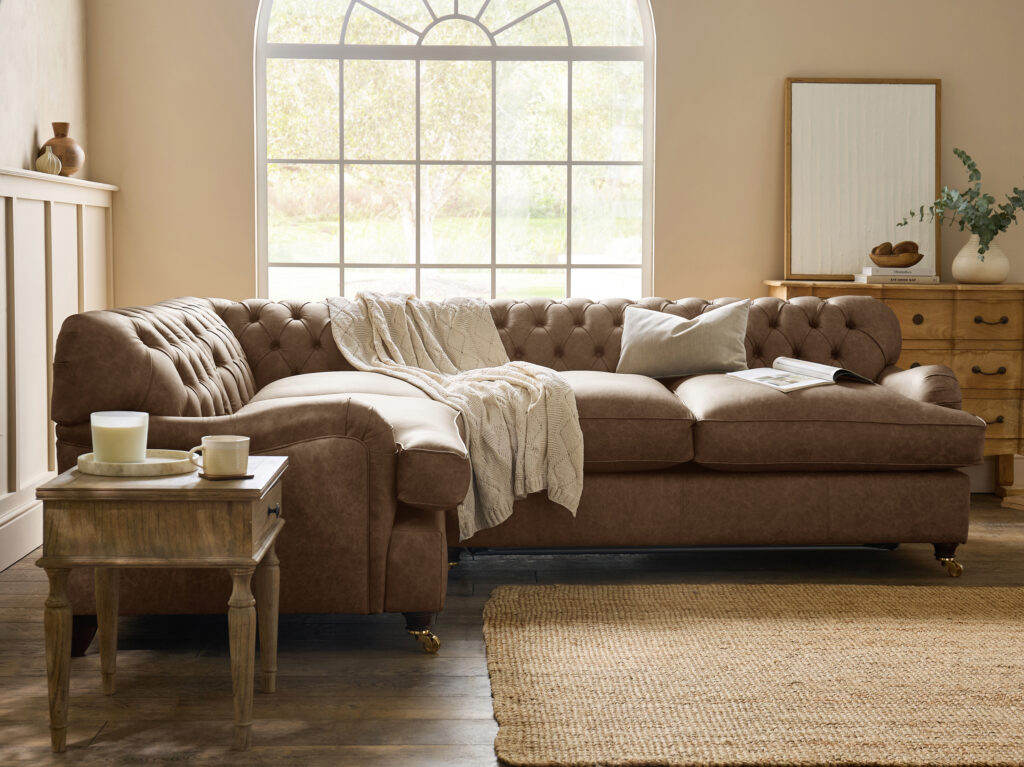Earthy Accents: Balance the deep comfort of your sofa with organic textures. Introduce rattan, woven jute rugs, or simple, light wood side tables. This combination of polished British craftsmanship with, natural materials is the essence of elevated style.