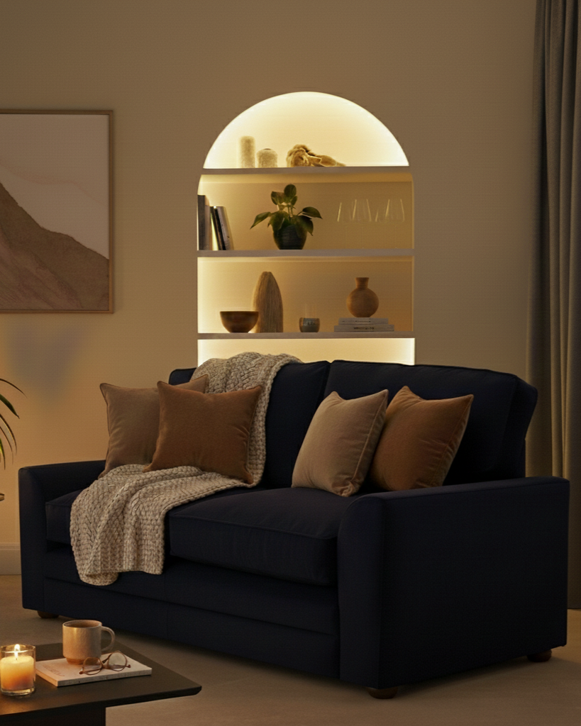 - Navy and Inky Blue: For a modern take on winter, dark navy and charcoal can create a soothing, cocooning effect. Using these colours on a large sectional or corner sofa provides incredible depth, especially when chosen in a heavy-grade fabric like our textured weaves.