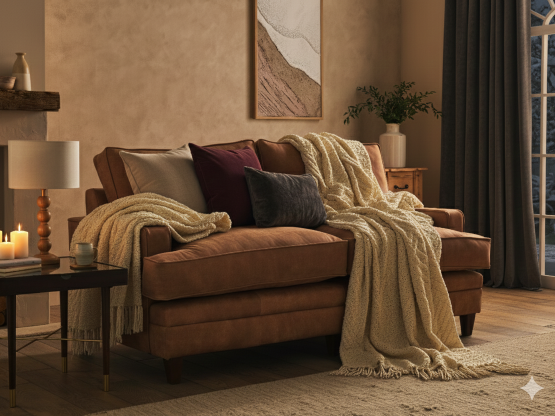 - The Final Touch: Your accessories are your final opportunity to enhance the winter palette. Drape weighty knits, luxurious wool, or high-quality faux fur throws over the arms of your seating. Layering these textiles in complementary colours (like cream, charcoal, and burgundy) adds functional warmth and visual depth, completing your ultimate winter nook.