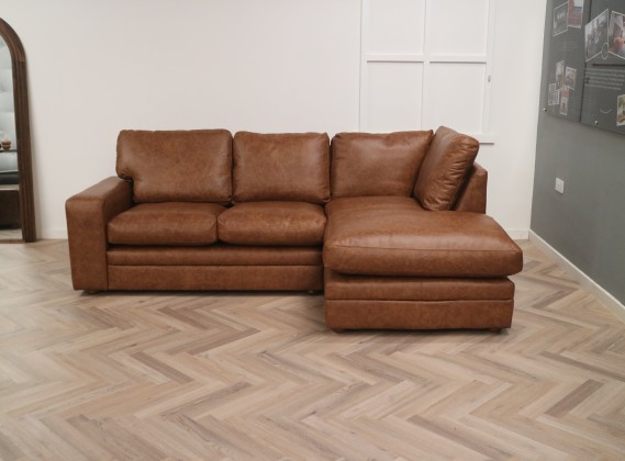 ViewAbbey Leather Corner Chaise Sofa - 2.5 x RHF Chaise - Dune Fudge