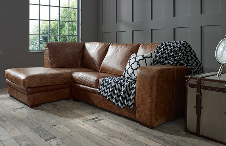 Large Corner Chaise Sofa. Sofa finished in vintage tan.
